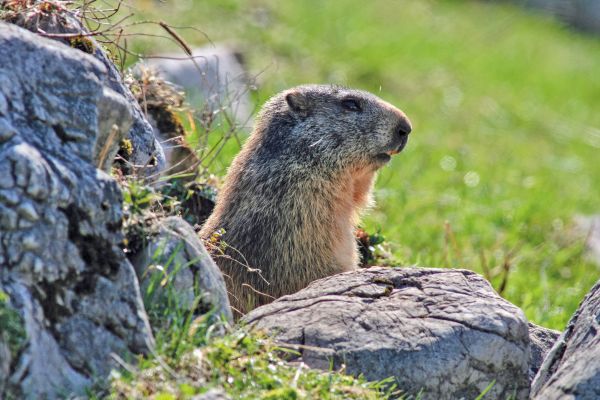 Das Murmeltier verbringt die heiße Mittagszeit am liebsten in seinem kühlen Bau. Deshalb machen wir uns früh auf den Weg zur Königsbachalm. Dort können wir die Murmeltiere,
