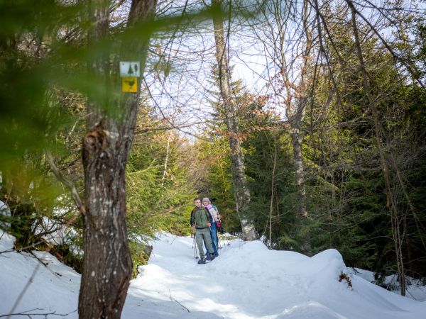 Streifen Sie mit Schneeschuhen durch die Nationalparkwälder und lassen Sie sich von den tief verschneiten Baumgestalten und herrlichen Ausblicken verzaubern.