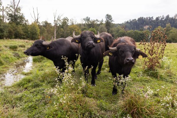 In diesem Jahr weiden seltene Nutztiere in Straß: Wasserbüffel und Murnauer Werdenfelser Rinder sorgen dafür, dass das Mosaik an Kleinstrukturen noch bunter wird und vielen weiteren Arten, wie Gelbbauchunke, Laubfrosch oder Wiesenbrütern zugutekommt. Kommen Sie mit auf einen Besuch zu unseren tierischen Landschaftspflegern!